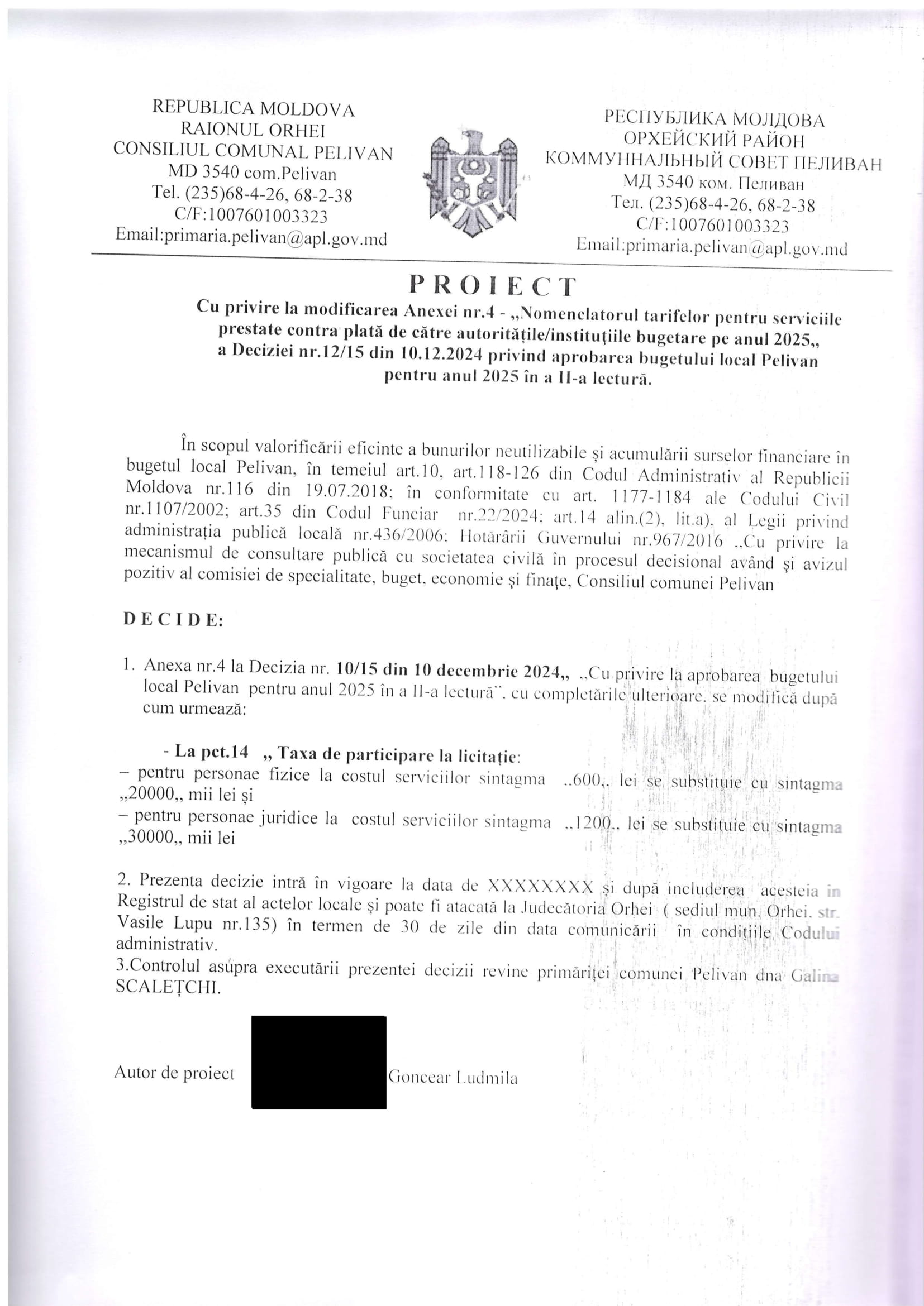 Comunicat informativ Primăria comunei Pelivan , r-nul Orhei anunță pentru data de 01.07.2025, la ora 14-00 […]