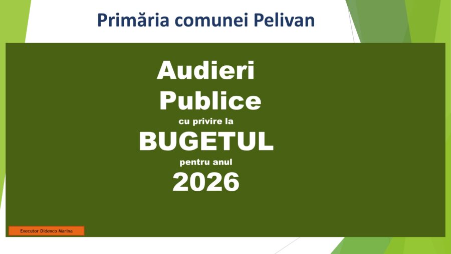 17 Noiembrie, 2025 Noutăți și Anunțuri ANUNȚ! SPRE ATENȚIA CETĂȚENILOR COMUNEI PELIVAN! Autoritatea executivă а Consiliului comunal Pelivan, raionul Orhei, inițiază începând cu data de 17 noiembrie 2025 […] Citește mai mult